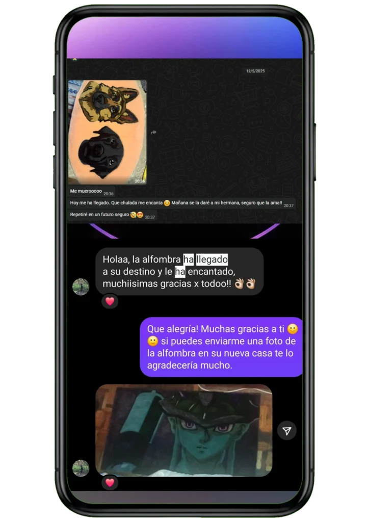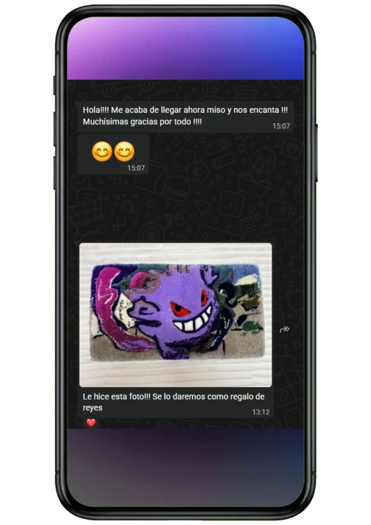 Si estás listo para encargar tu alfombra personalizada, solo tienes que escribirnos por WhatsApp o rellenar el formulario de contacto de esta página. Cuéntanos tu idea, y nos pondremos en marcha para convertirla en una pieza única.